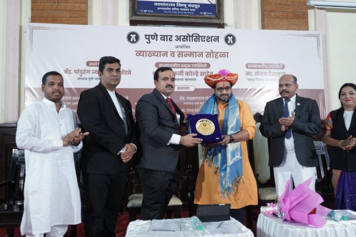 पुणे जिल्ह्यातील वकिलांची शिखर संघटना असलेल्या पुणे बार असोसिएशन मंगळवार, दिनांक ०६/०९/२२ रोजी, दुपारी २.०० वा. जिल्हा न्यायालयातील अशोका हॉल येथे लोकसभा खासदार मा. अमोल कोल्हे यांचे छत्रपती शिवाजी महाराज यांच्यावर व्याख्यान आयोजित करण्यात आले होते. याप्रसंगी पुणे जिल्हा न्यायालयाचे प्रमुख जिल्हा न्यायाधीश संजय देशमुख साहेब व पुणे बार असोसिएशनचे अध्यक्ष पांडुरंग थोरवे हे उपस्थित होते.