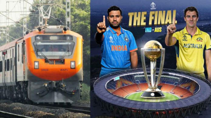 क्रिकेट विश्वचषकाचा अंतिम सामना भारत विरुद्ध ऑस्ट्रेलिया असा अहमदाबाद येथे होणार आहे. महाराष्ट्रातून विश्वचषकाचा अंतिम सामना पाहण्यासाठी जाणाऱ्या क्रिकेट प्रेमींसाठी मध्य रेल्वेने विशेष सुविधा केली आहे. रविवारी होणाऱ्या या सामन्यासाठी मध्य रेल्वेने विशेष रेल्वे सोडण्याचा निर्णय घेतला आहे.