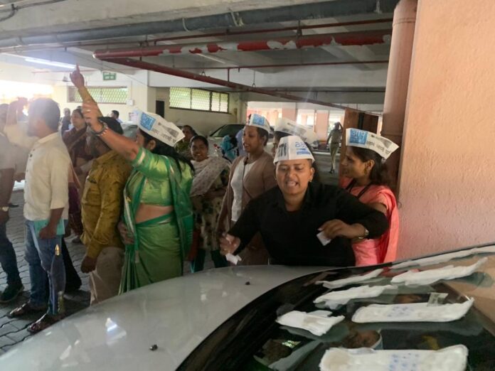 आम आदमी पक्षाच्या वतीने आज पुणे महानगरपालिकेच्या आवारात सरकारी शाळेतील सातवी ते दहावीच्या विद्यार्थिनींना मागील दोन वर्षापासून मोफत सॅनिटरी पॅड मिळत नसल्याने तीव्र आंदोलन केले गेले. यावेळी आंदोलनकर्त्या महिला कार्यकर्त्यांनी प्रशासनाचा निषेध म्हणून आयुक्त विक्रमकुमार यांच्या गाडीवर प्रतिकात्मक स्वरूपात सॅनिटरी पॅड चिटकवून निषेध नोंदविला.