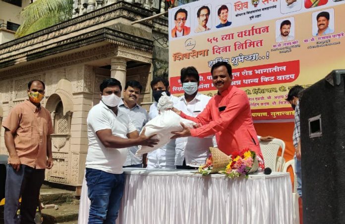 शिवसेना विभाग प्रमुख संतोष तोंडे यांच्यावतीने शिवसेनेच्या ५५ व्या वर्धापन दिनाचे निमित्त साधून, शहर प्रमुख गजानन थरकुडे आणि उपशहर प्रमुख राजेंद्र धनकुडे यांच्या हस्ते, सुतारवाडी पाषाण सुसरोड भागातील रिक्षाचालकांसाठी अन्य धान्य किट वाटप करण्यात आले.
