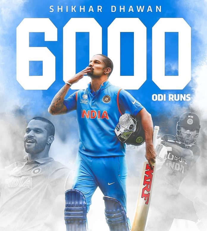 रविवारी शिखरने २३ वी धाव घेताच वनडे कारकिर्दीत ६००० धावा पूर्ण केल्या. त्याने कारकिर्दीतील १४३ वनडे सामन्यांतील १४० व्या डावात खेळताना हा महत्त्वाचा टप्पा गाठला. त्यामुळे तो ६००० वनडे धावांचा टप्पा गाठणारा १० भारतीय क्रिकेटपटू ठरला. याशिवाय तो सर्वात जलद ६००० वनडे धावा करणाऱ्या भारतीय खेळाडूंच्या यादीत सौरव गांगुलीला मागे टाकून दुसऱ्या क्रमांकावर आला आहे. सध्या वनडेत सर्वात जलद ६००० धावा करणाऱ्या भारतीय खेळाडूंच्या यादीत विराट कोहली (१३६ डाव) अव्वल क्रमांकावर आहे. तर गांगुली आता तिसऱ्या क्रमांकावर घसरला आहे. गांगुलीला ६००० वनडे धावा करण्यासाठी १४७ डाव लागले होते.