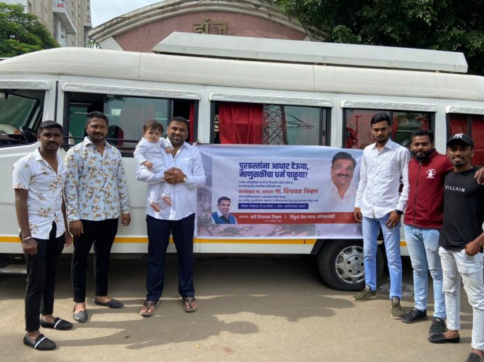 राज्यात अतिवृष्टी झाल्याने मागील काही दिवसांमध्ये पावसाने अगदी अनेकांचे संसारच उध्वस्त केलेत. कोकणात घडलेल्या या हृदयपिळवून टाकणाऱ्या काही घटना ज्यात अनेक नागरिकांचे कुटुंब हे जगण्यासाठी संघर्ष करत आहे. अशा परिस्थितीमध्ये शिवाजीनगर पुणे चे माजी कार्यसम्राट आमदार विनायक निम्हण यांच्या वाढदिवसानिमित्त आयोजित सर्व कार्यक्रम रद्द केले. सातारा जिल्ह्यातील प्रसिद्ध पालीच्या खंडोबा असणार्या पाल गावात वाढदिवसानिमित्त पूरग्रस्त बाधितांना सनी निम्हण व कार्यकर्त्यांनी शंभर कुटुंबांना मदत म्हणून साहित्याचे वाटप केले. त्यामध्ये धान्य, रेशन किट, कपडे, ब्लँकेट, औषधे तसेच विद्यार्थ्यांसाठी दप्तर, कंपास, वह्या, पुस्तके इत्यादी शालोपयोगी साहित्य वाटप करण्यात आले.