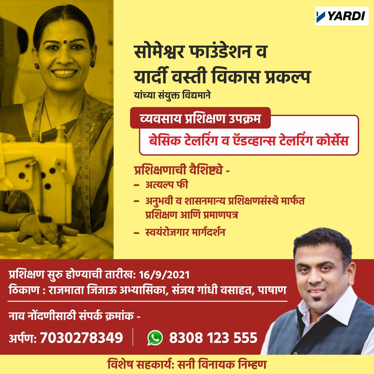 याबद्दलची माहिती मॅकन्यूज ला देताना माजी नगरसेवक सनी निम्हण यांनी सांगितले की, कोरोनाकाळात अनेक उद्योग डबघाईस आले. बऱ्याच जणांना आपले उद्योगधंदे इच्छा नसतांना बंद करावे लागले. यात अनेक होतकरू माता-भगिनींचा देखील समावेश होता. अशा माता-भगिनींना परत त्यांच्या पायावर उभे राहता यावे याकरिता संजयगांधी वसाहत, लमाणतांडा, निम्हणमळा, सोमेश्वरवाडी, पाषाण भागातील महिलांसाठी सोमेश्वर फाऊंडेशन व यार्दी वस्ती विकास प्रकल्प यांच्या संयुक्त विद्यमाने व्यवसाय प्रशिक्षण उपक्रमांतर्गत ‘बेसिक टेलरिंग व ऍडव्हान्स टेलरिंग कोर्सेस’ उपलब्ध करून देत आहोत.