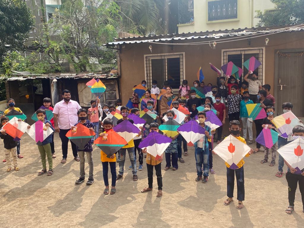 बावधन येथे मंदार घुले यांच्या वतीने लहान मुलांसाठी पतंग वाटप