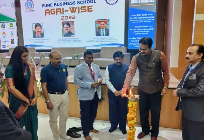 पिंपरी चिंचवड एज्युकेशन ट्रस्टच्या (पीसीईटी) निगडी येथील पुणे बिझनेस स्कूल (पीबीएस) मध्ये ॲग्रीवाईज २०२२ या परिसंवादाचे आयोजन करण्यात आले होते. या कार्यक्रमाच्या उद्घाटन प्रसंगी हर्षवर्धन पाटील बोलत होते. यावेळी साखर आयुक्त शेखर गायकवाड, कृषी व अर्थतज्ञ डॉ. परशराम पाटील, सह्याद्री फार्मचे आबासाहेब काळे, पीबीएस संचालक डॉ. गणेश राव आणि पीबीएसच्या अधिष्ठाता डॉ. मंजू पुनिया चोप्रा आदी उपस्थित होते.