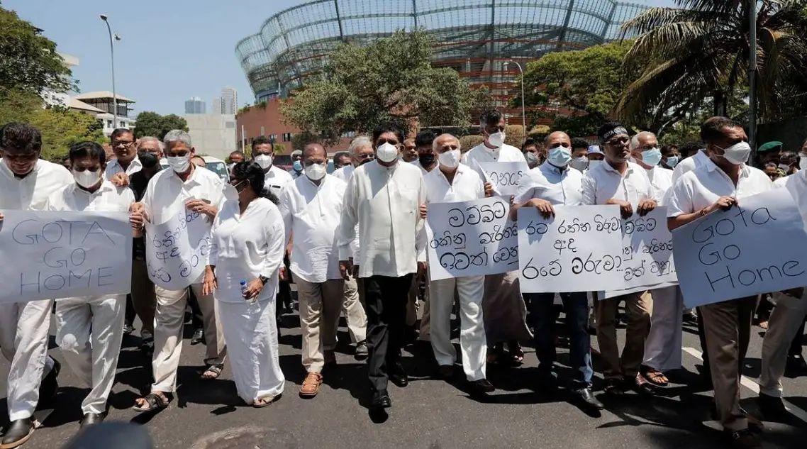 सरकारने शनिवार व रविवारी जाहीर केलेल्या संचारबंदीचे उल्लंघन केल्याप्रकरणी विरोधी पक्षाचे नेते साजिथ प्रेमदासा यांच्या नेतृत्वाखाली विरोधी पक्षाच्या खासदारांनी येथील ऐतिहासिक स्वातंत्र्य चौकाकडे निषेध मोर्चा काढला होता. आंदोलनांचे पूर्वनियोजित वेळापत्रक लक्षात घेऊन सरकारने शनिवार व रविवार संचारबंदी जाहीर केली होती. ‘कोलंबो गॅझेट’मध्ये प्रसिद्ध झालेल्या वृत्तानुसार, रविवारी पश्चिम प्रांतात एकूण ६६४ जणांना अटक करण्यात आली आहे.