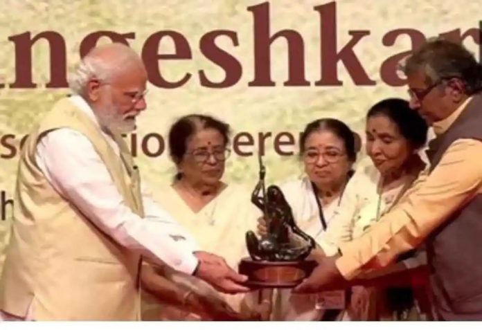 भारतरत्न गानसम्राज्ञी लता मंगेशकर यांच्या नावाचा पहिला पुरस्कार स्वीकारून तो पंतप्रधान नरेंद्र मोदी यांनी भारतीय जनतेला समर्पित केला आहे.