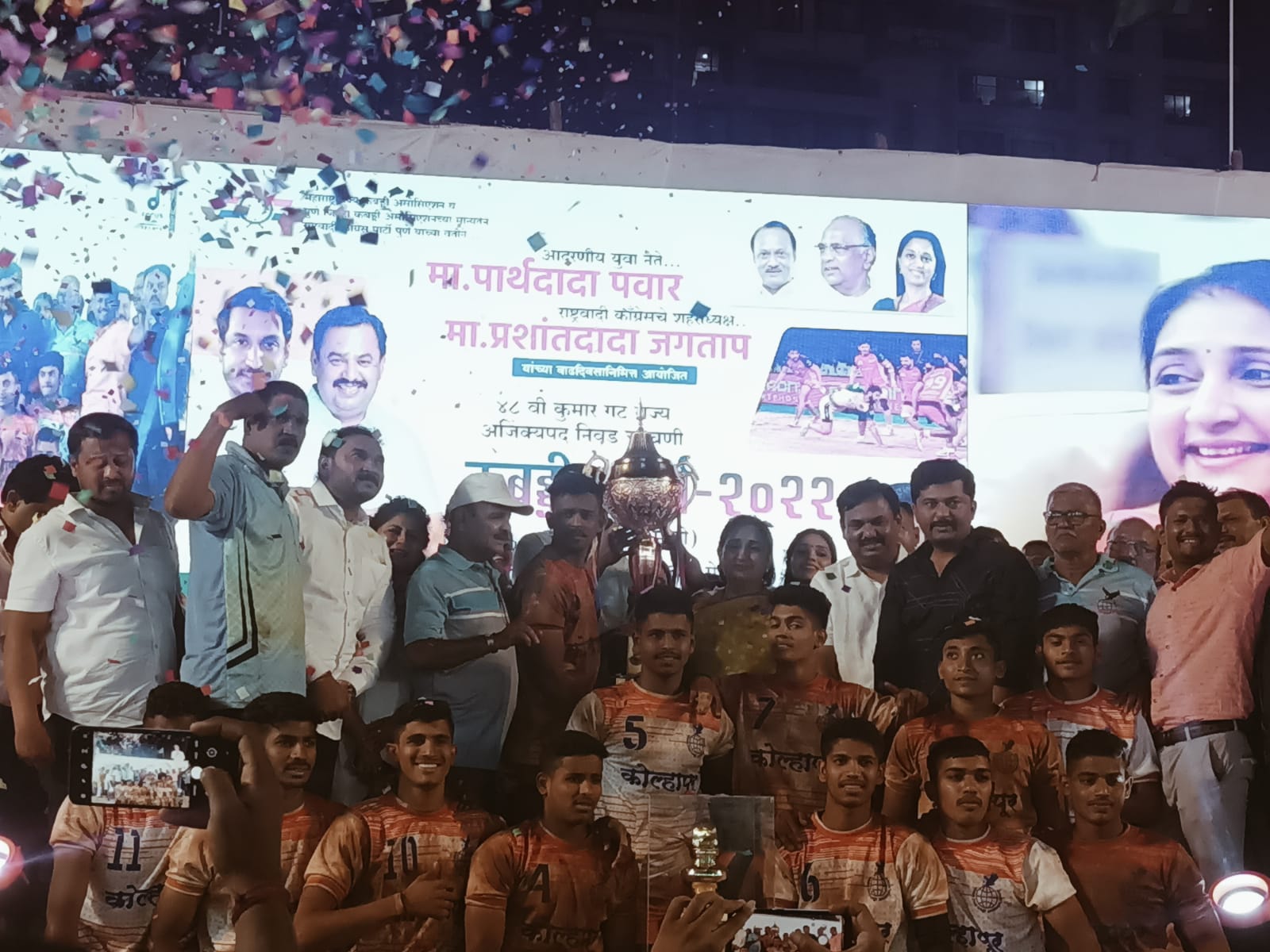 महाराष्ट्र राज्य कबड्डी संघटनेच्या मान्यतेने व जिल्हा कबड्डी संघटना यांच्या सहकार्याने युवानेते पार्थ पवार, शहराध्यक्ष प्रशांत जगताप यांच्या वाढदिवसाच्या निमित्ताने राष्ट्रवादी काँग्रेस पक्षाच्या वतीने ४८ व्या कुमार – कुमारी गटाच्या राज्य अजिंक्यपद कबड्डी स्पर्धेत कुमार गटात कोल्हापूर जिल्हा तर कुमारी गटात पालघर जिल्हा संघाने अजिंक्यपद मिळविले.