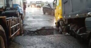 पहिल्याच पावसात मुंबई- अहमदाबाद महामार्ग खचला, वाहने अडकली; वाहतुकीचा मोठा खोळंबा