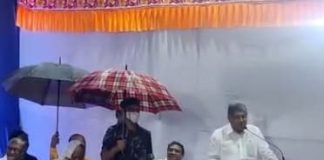 भर पावसात भाजपा कार्यकर्त्याच्या कार्यक्रमात आमदार चंद्रकांत पाटील चिंब भिजले