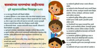 पुणे महानगरपालिकेच्या निवडणुकीमध्ये इच्छुक उमेदवारांकडून अपेक्षित मागण्यासाठी बालकांचा जाहीरनामा
